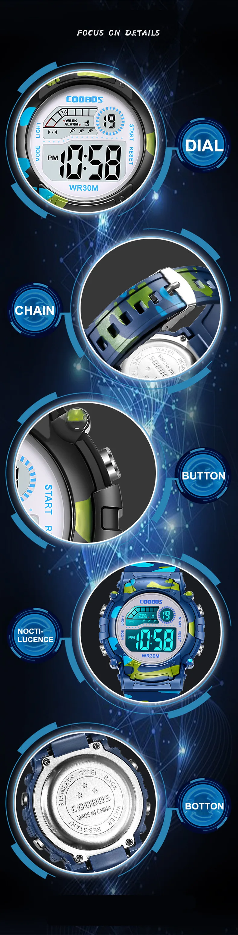 Sport Digital Watch for Kids Waterproof Luminous Children's Electronic LED Watch Fashion Multi-function Week Display Kids Watch